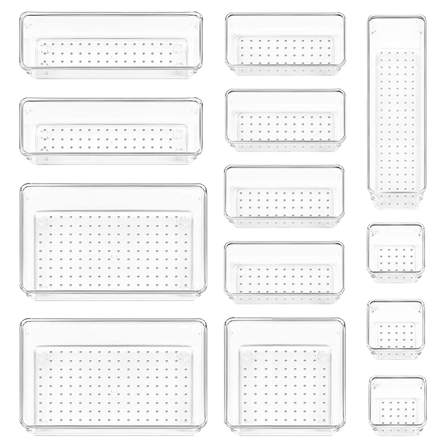 - 13 pieces drawer organizer trays keep your desktop and drawer neat and tidy.