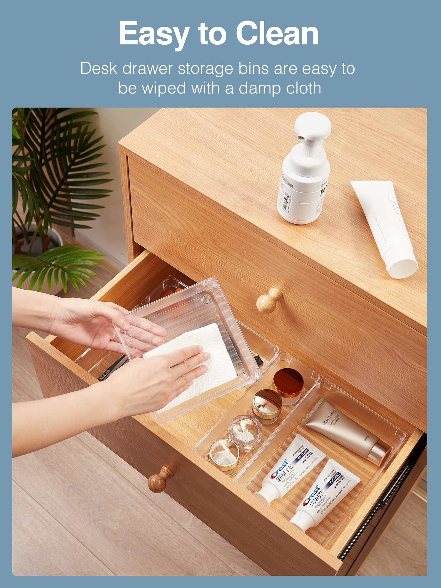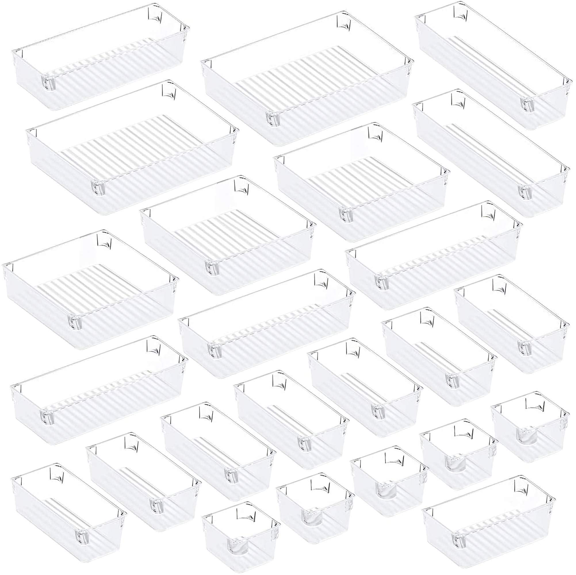 - Clear drawer organizers made of unbreakable plastic, ensure a long life of use.