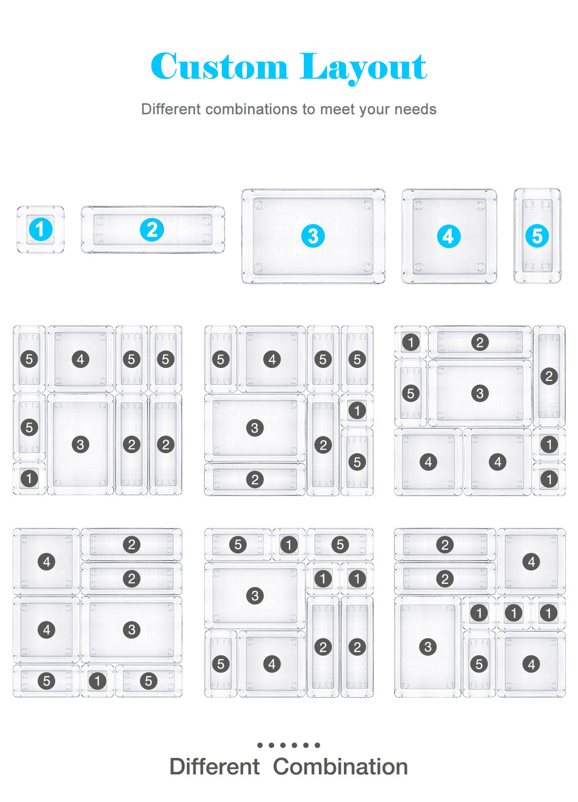 - Divided organizers set can keep different sizes of items organized, 5 sizes to customize way.